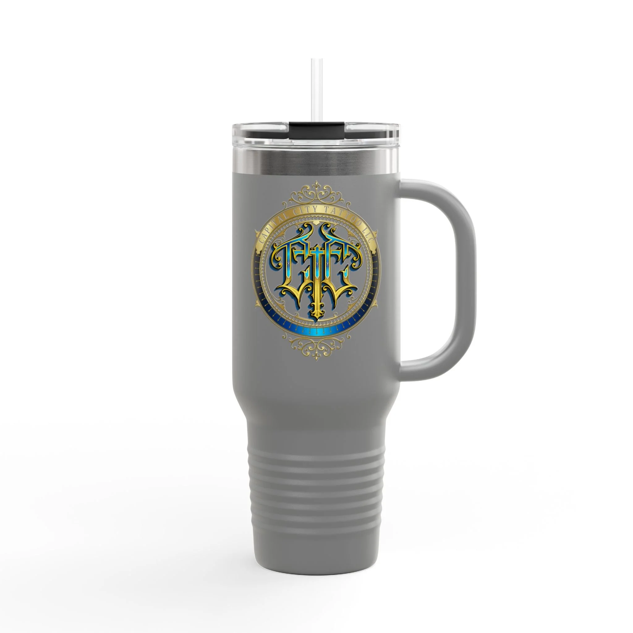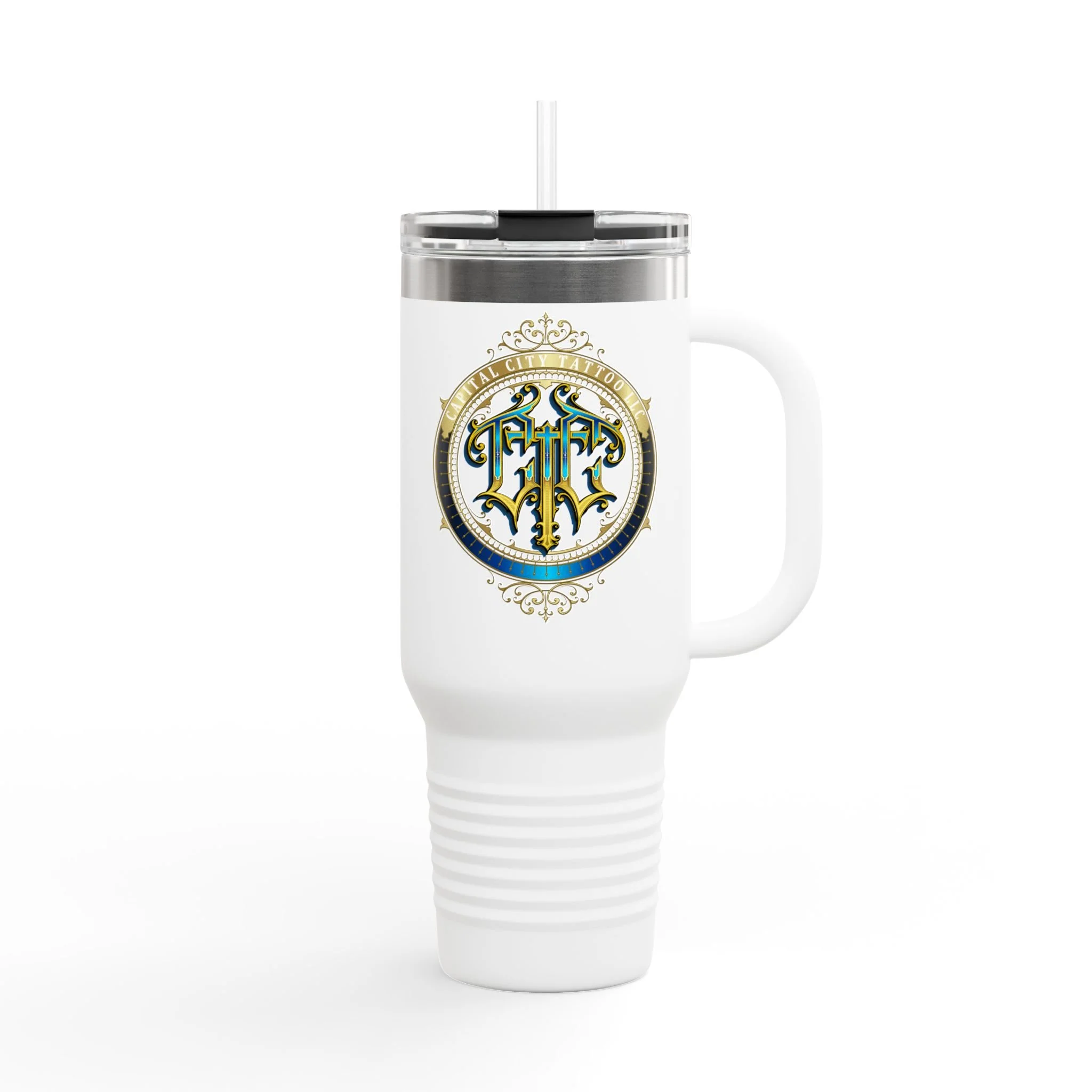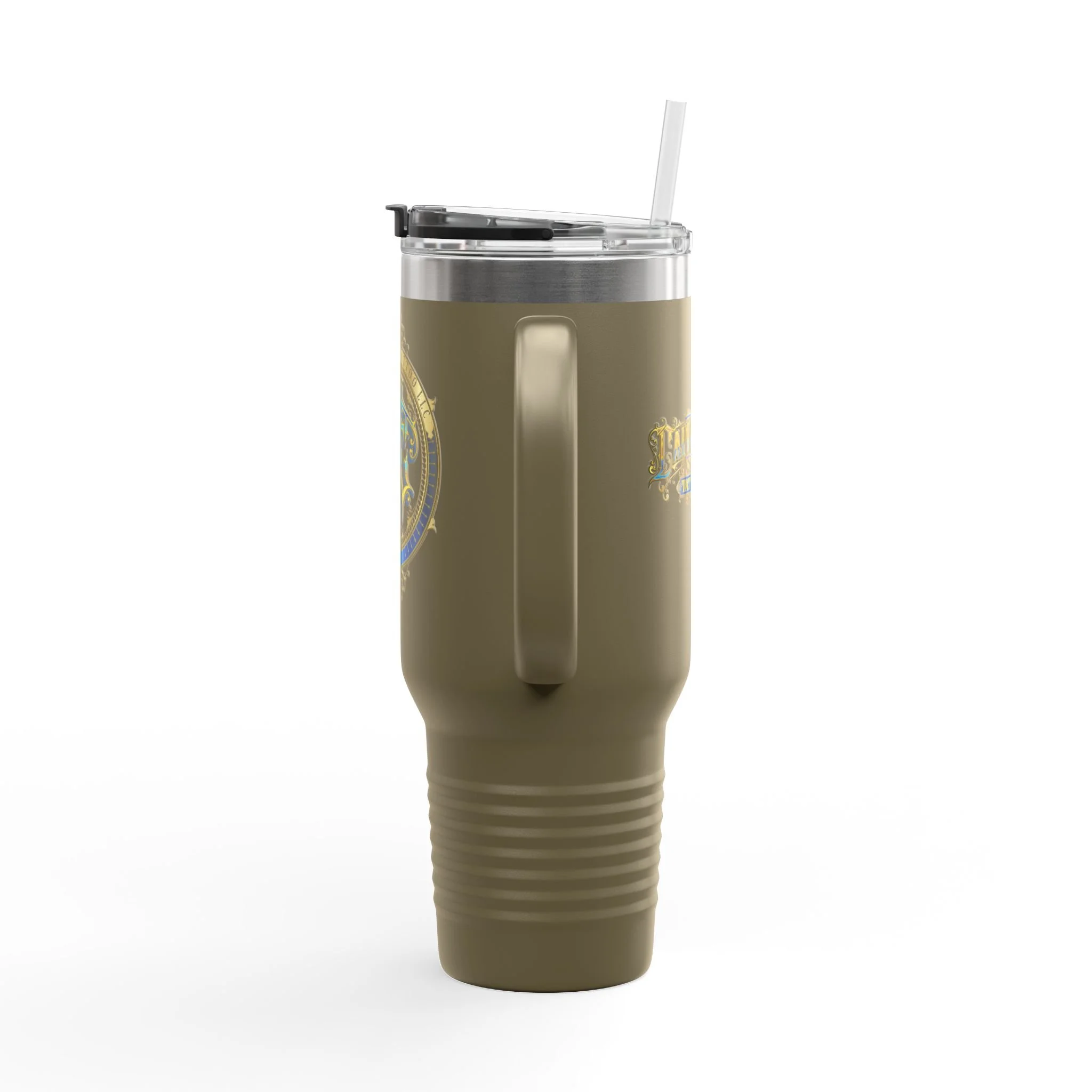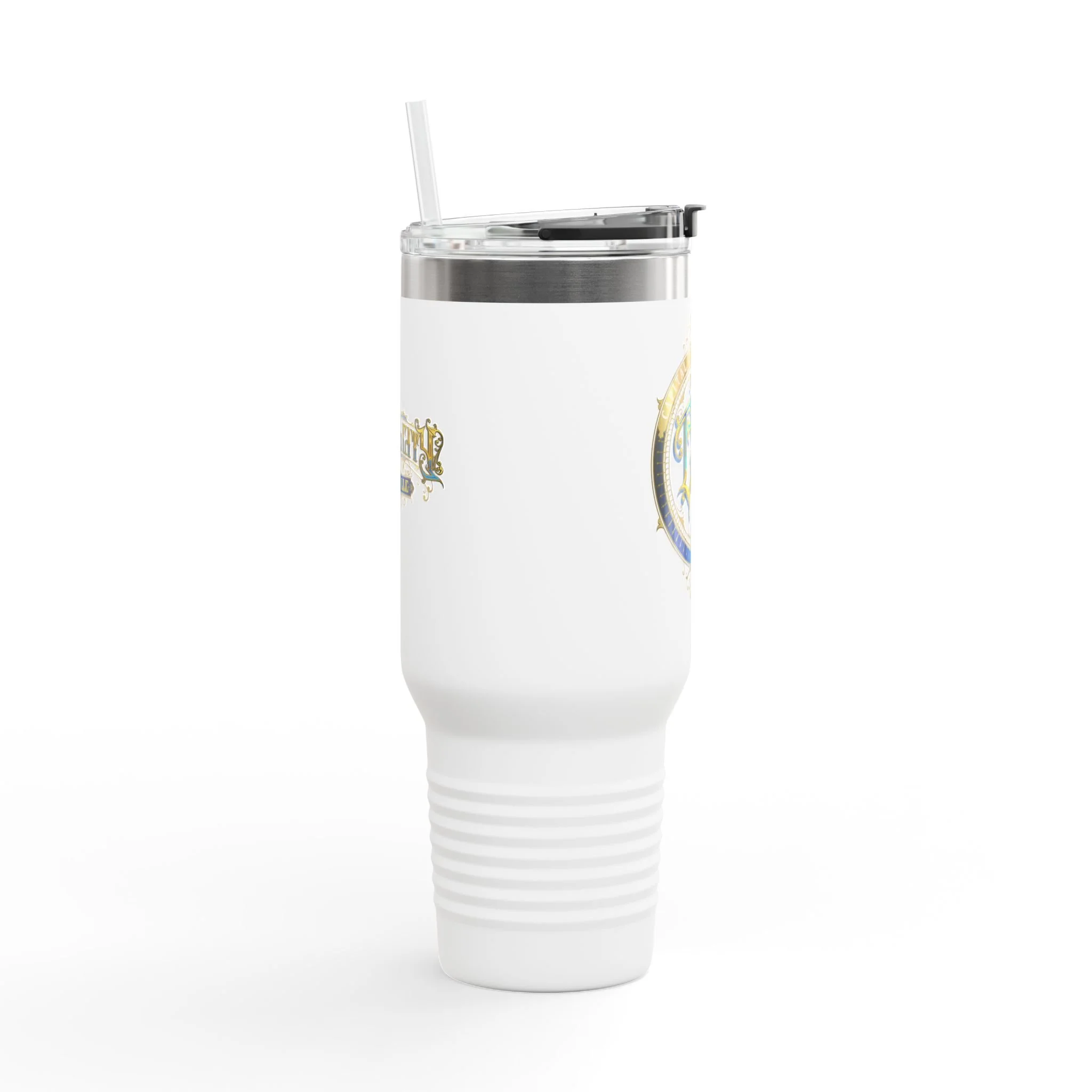 40oz Insulated Travel Mug with Ornate Monogram Crest — Large Thermal Tumbler