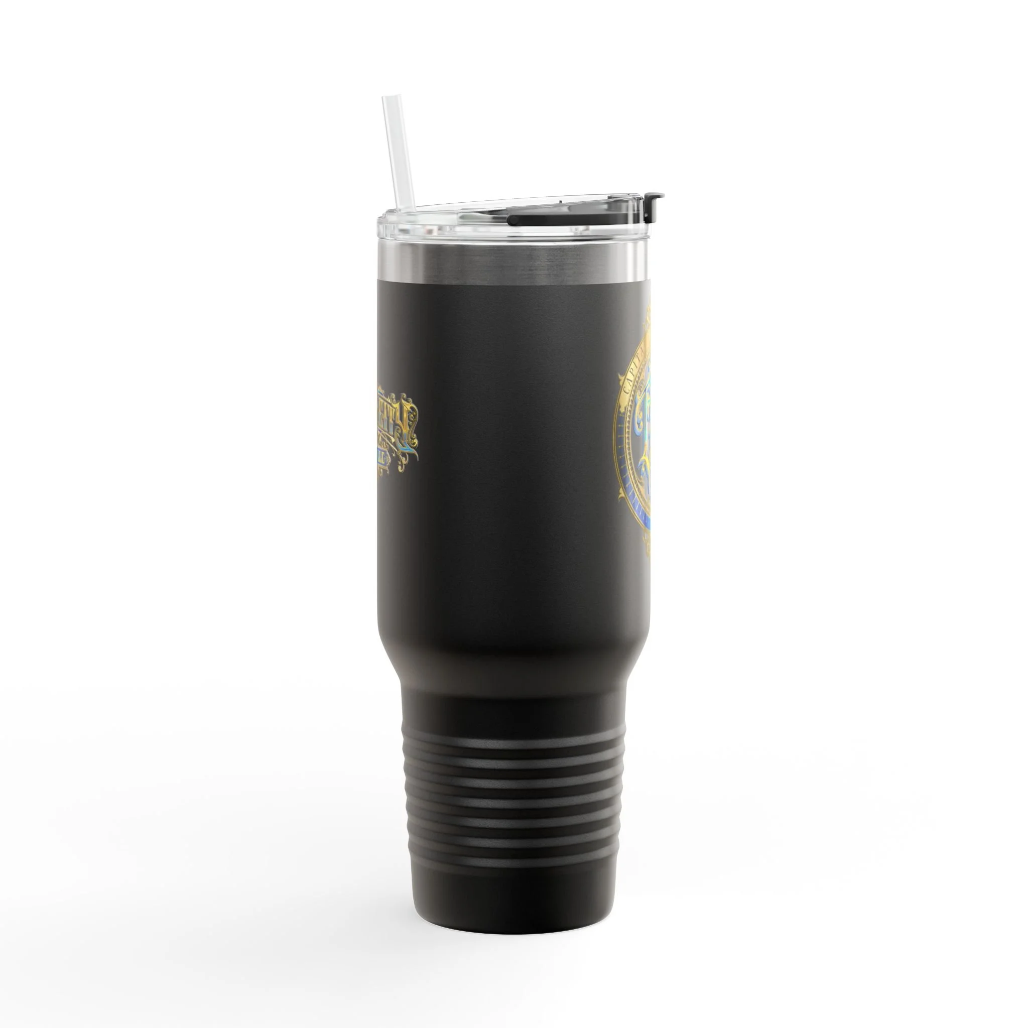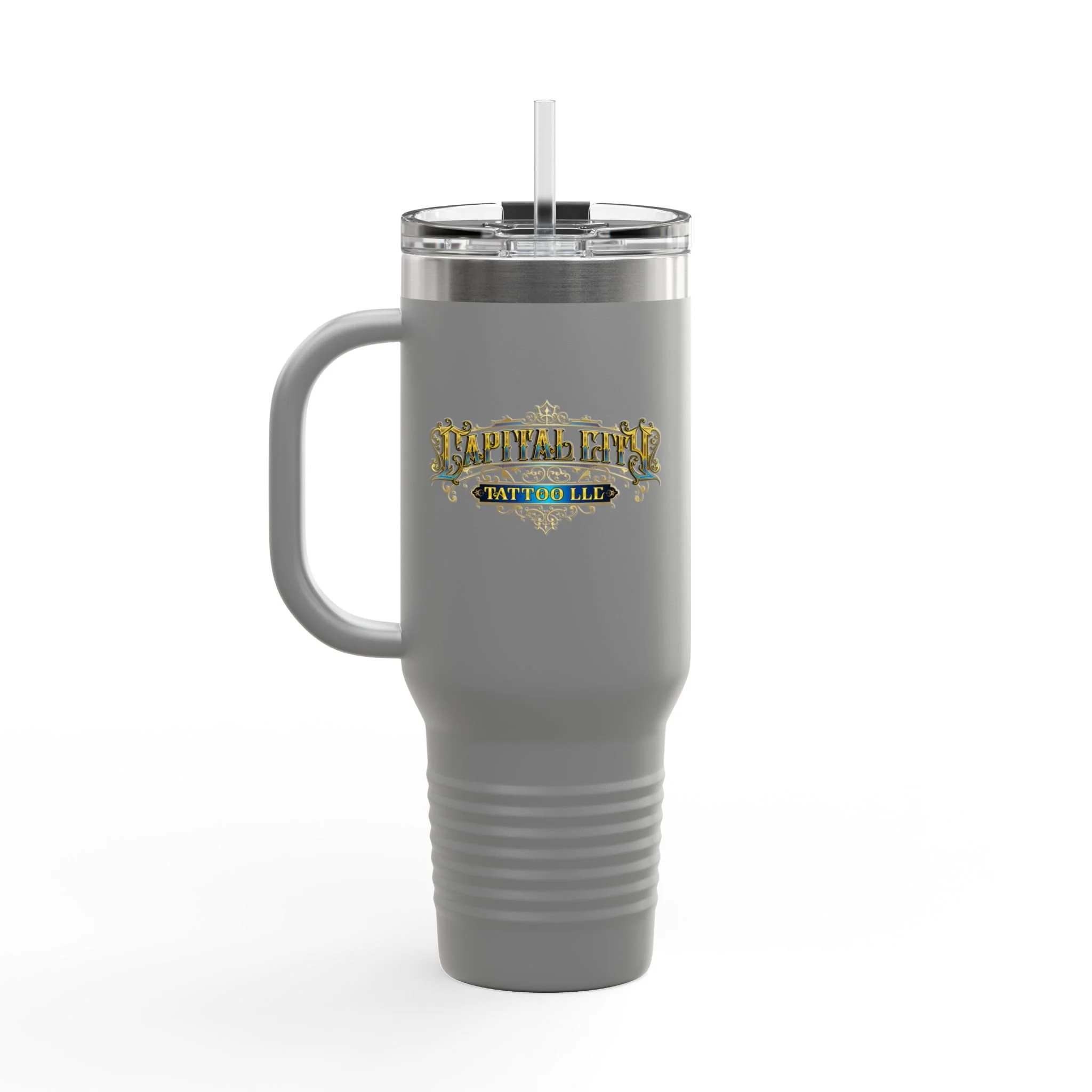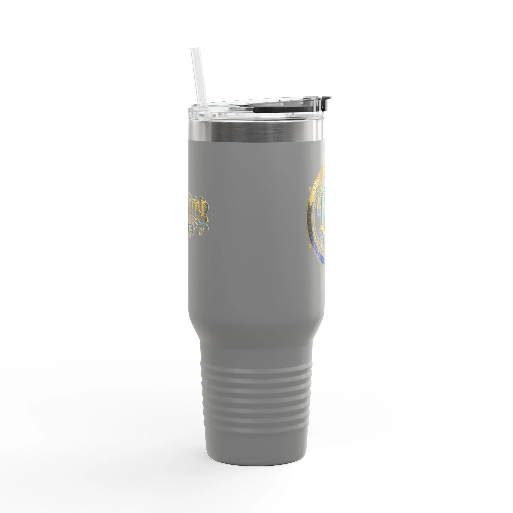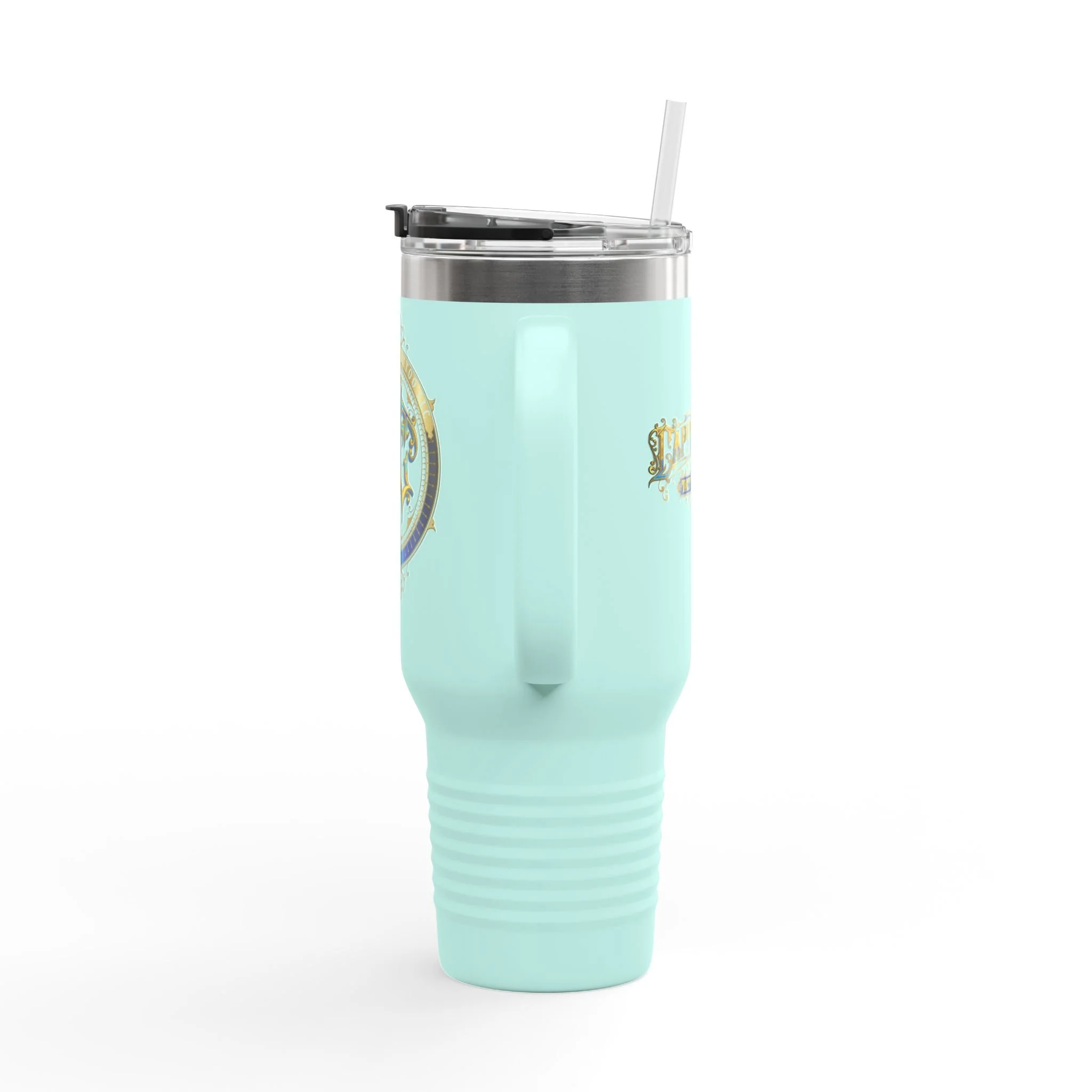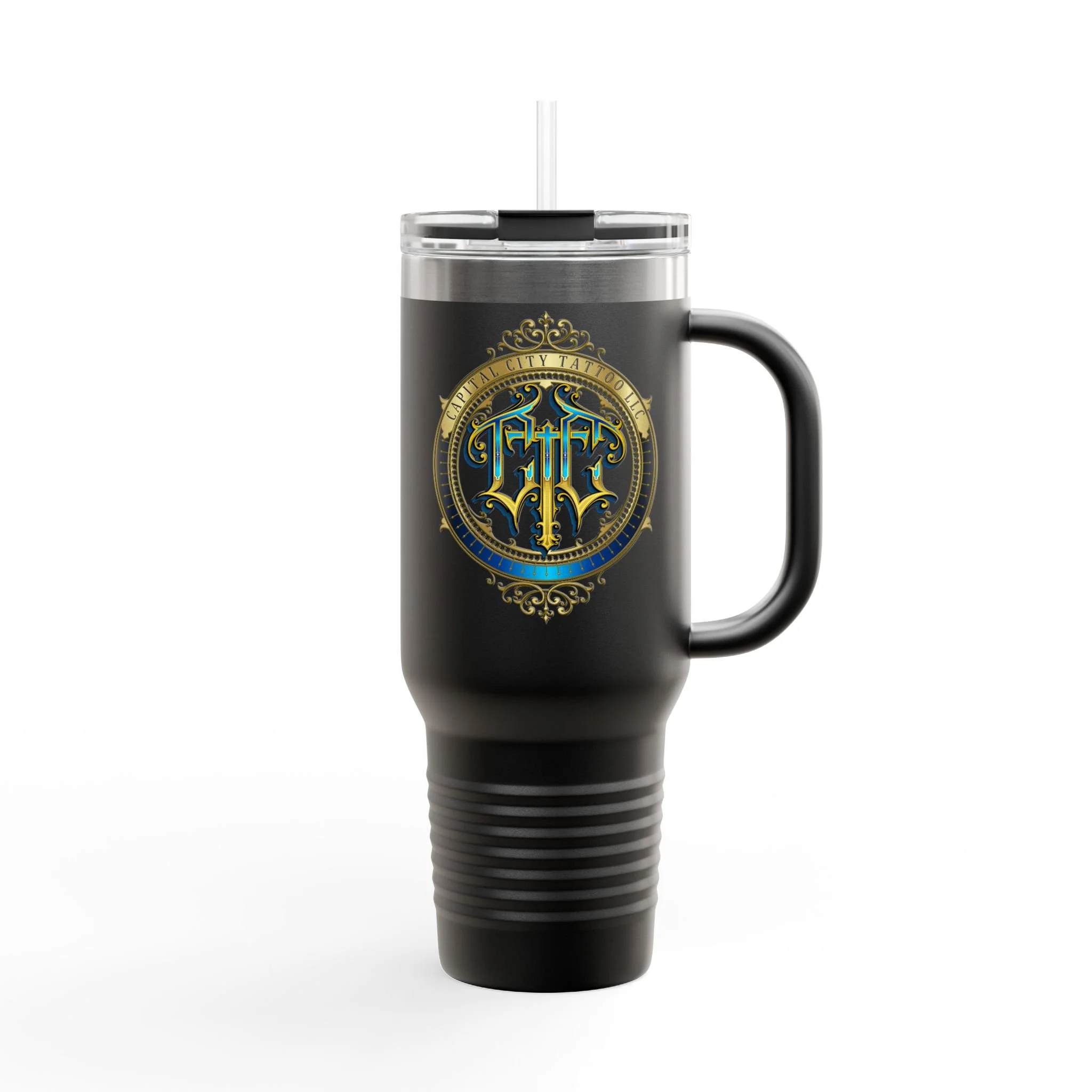 40oz Insulated Travel Mug with Ornate Monogram Crest — Large Thermal Tumbler